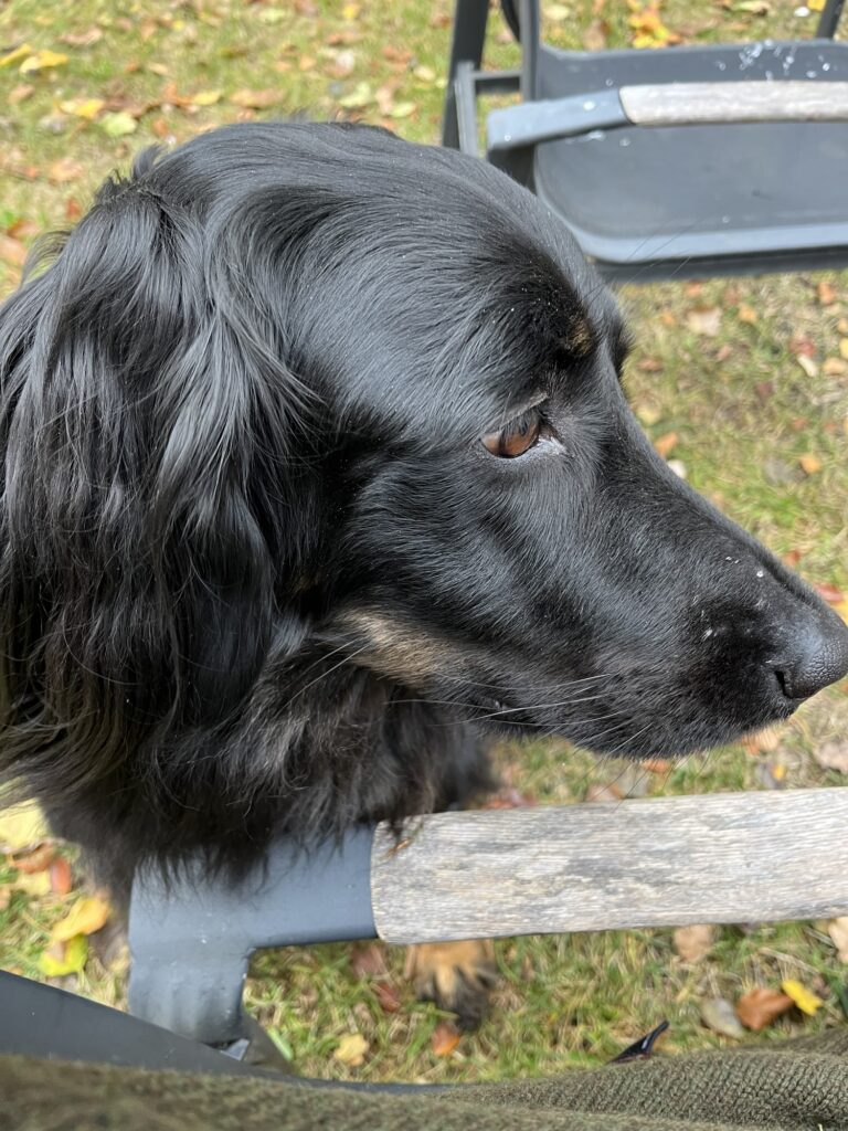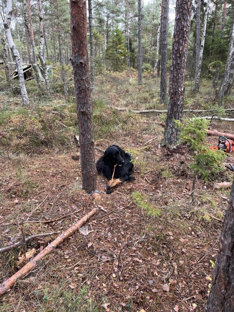 Udeliv når det er bedst – selvom Karma ikke er jagthund, er hun følgesvend på gåture og vagthund mens der bygges jagttårn ❤️