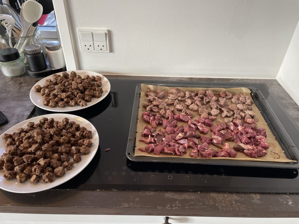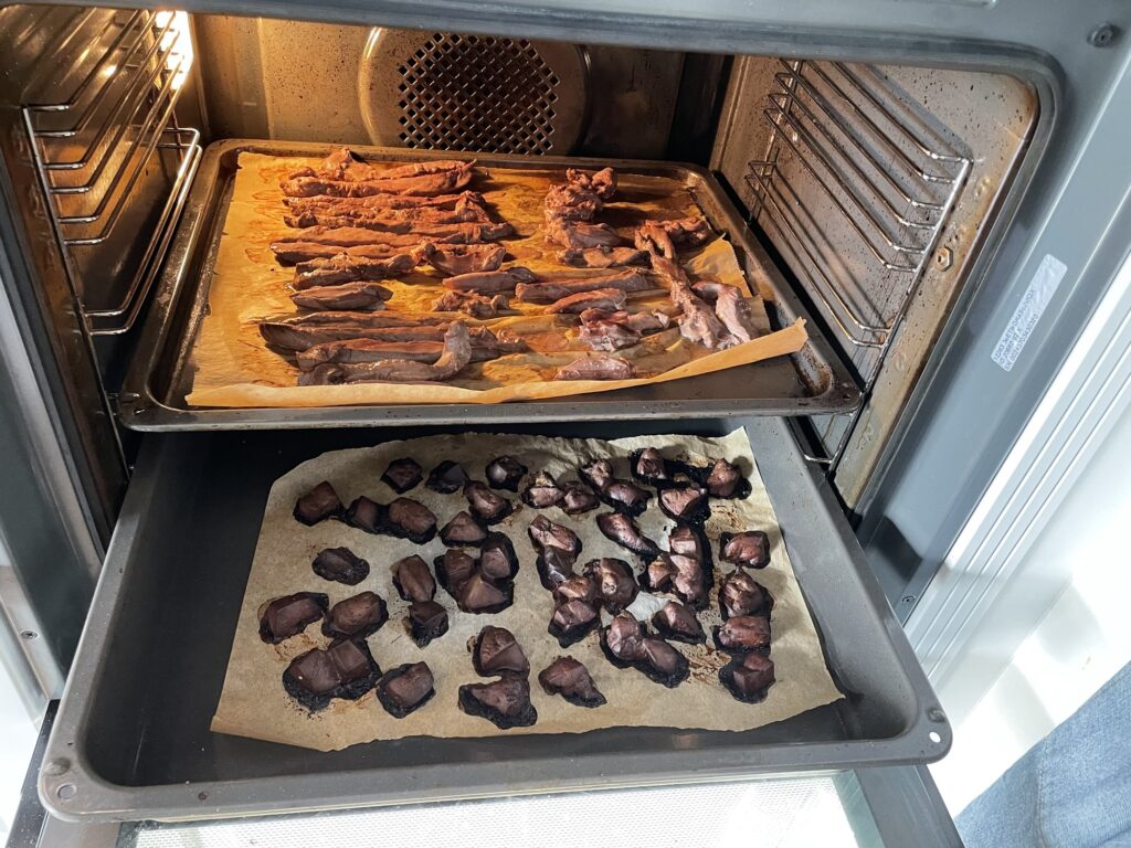 Så er der gang i godbiddekøkkenet – rådyr lever, hk dådyr og div. Sener som tørres til tyggestave.